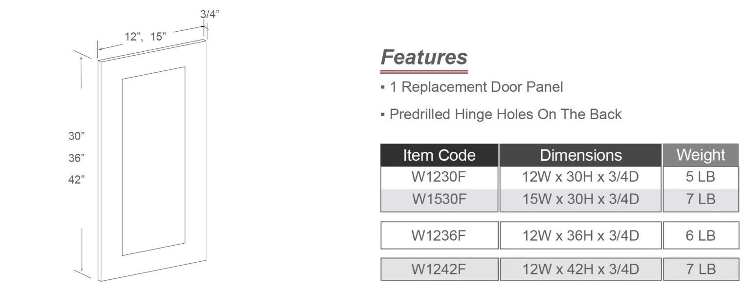 Dummy / False Door – Full Wood Door – 12in, 42in